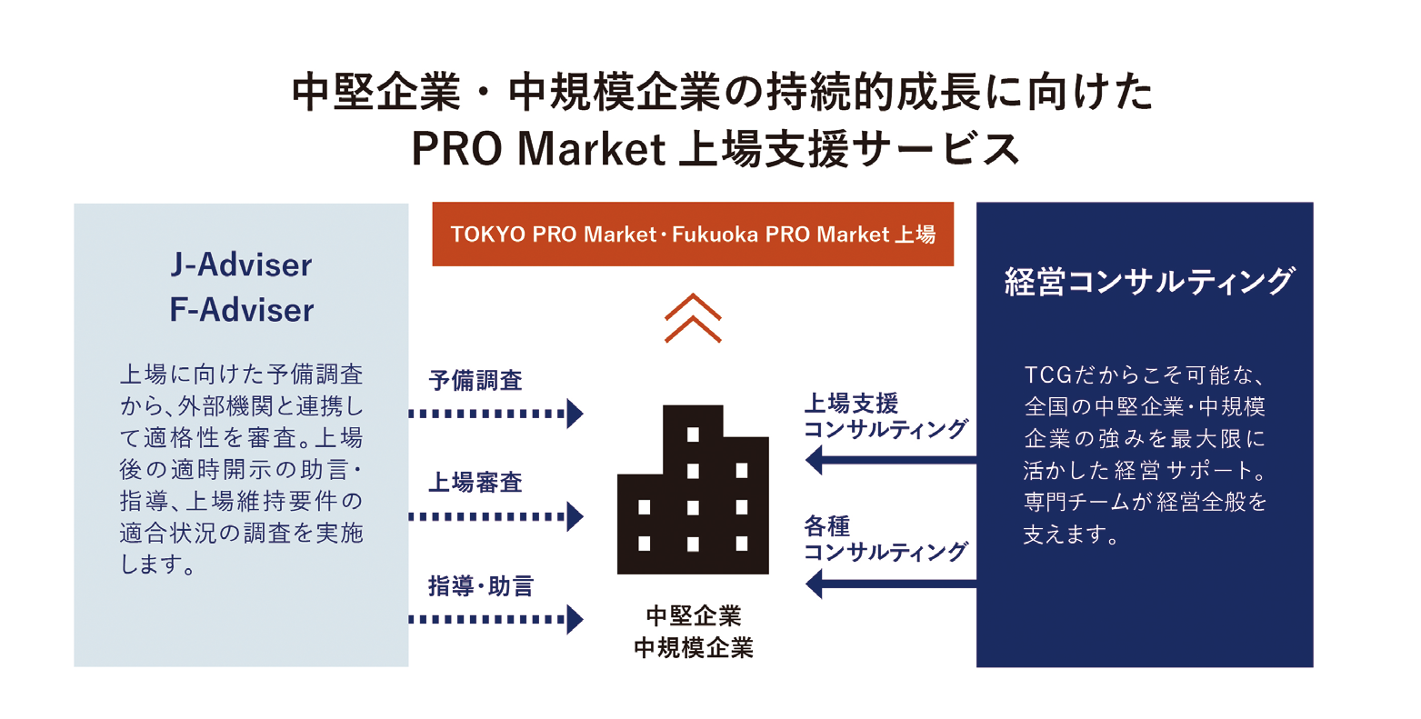 TPMでは上場企業としてふさわしいレベルのガバナンスが求められる一方、東証の一般市場(プライム・スタンダード・グロース)とは異なり、株主数や流通株式比率といった数値基準がありません。私たちは中堅企業・中規模企業のM&Aやグループ経営、ホールディングス化を頻繁にお手伝いしますが、上場もそうした成長戦略の中に位置づけるべきであり、そこで価値を提供できると確信しています。